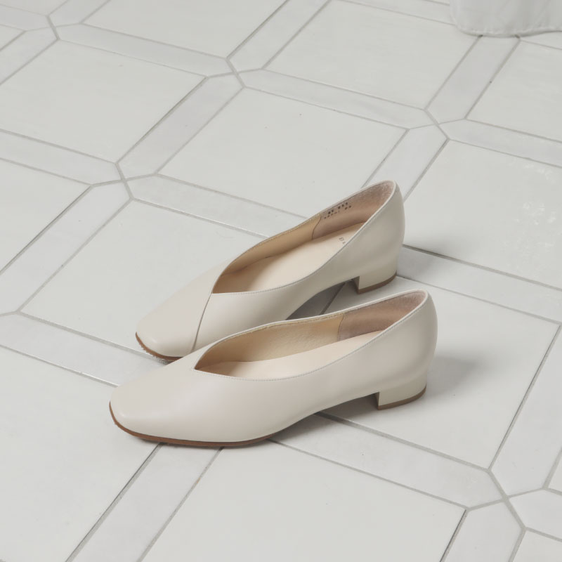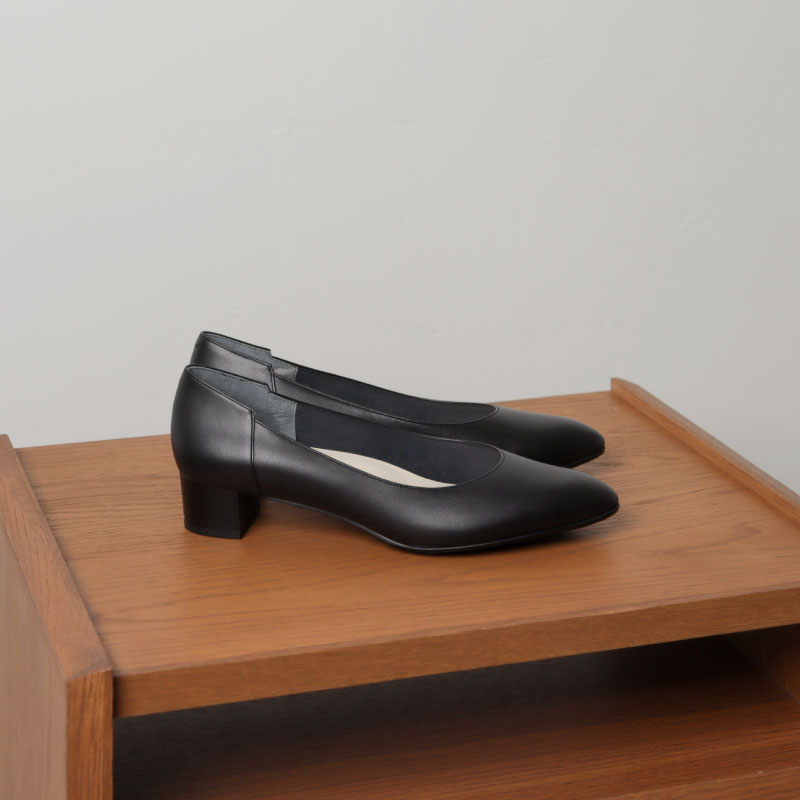 丸みを帯びたアーモンドトウが、女性らしい柔らかさを演出。ゆったりとした履き心地なのに、さりげなくヒールアップされているのも嬉しいポイント。