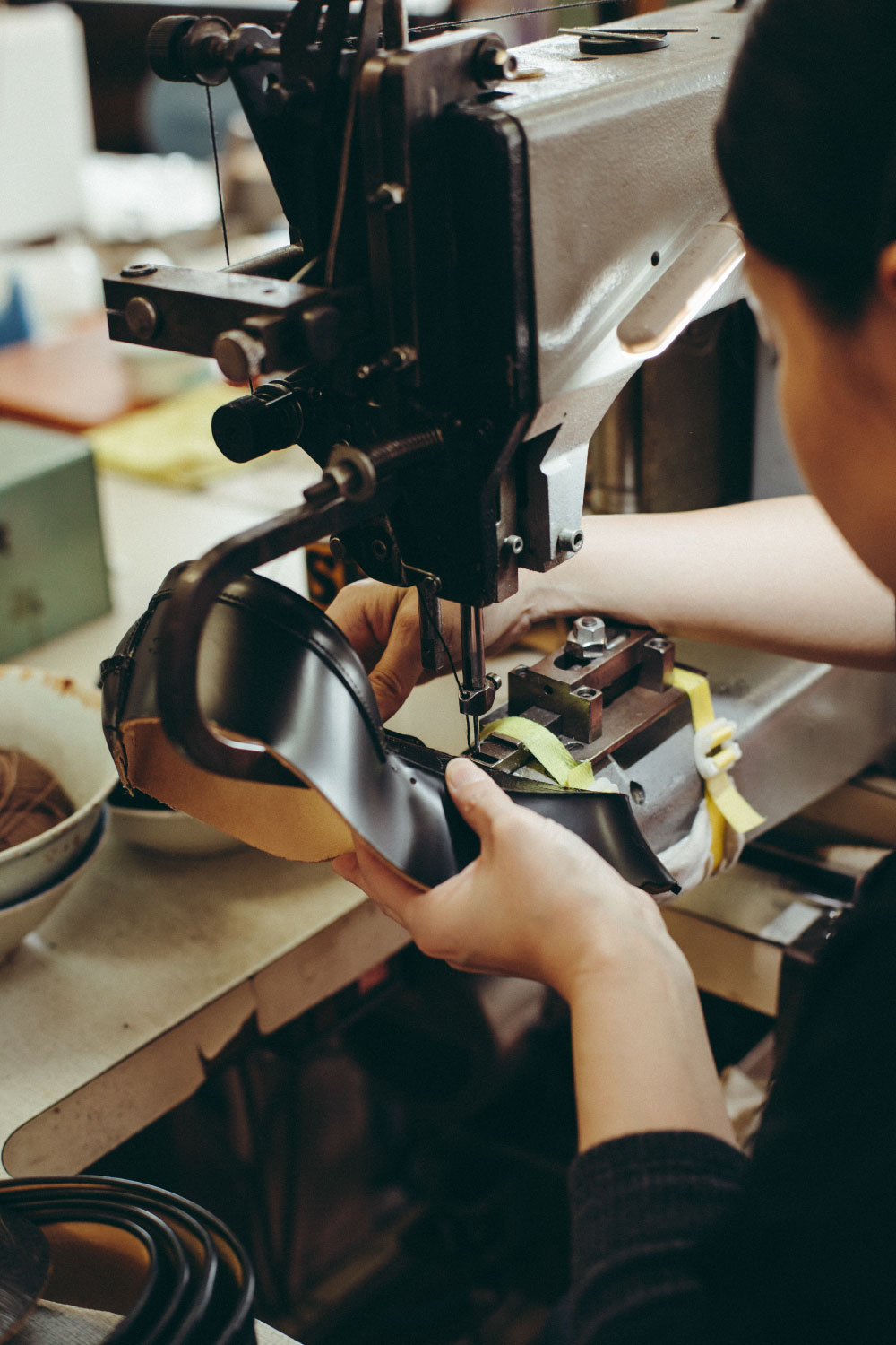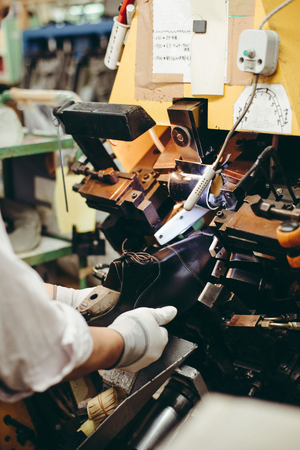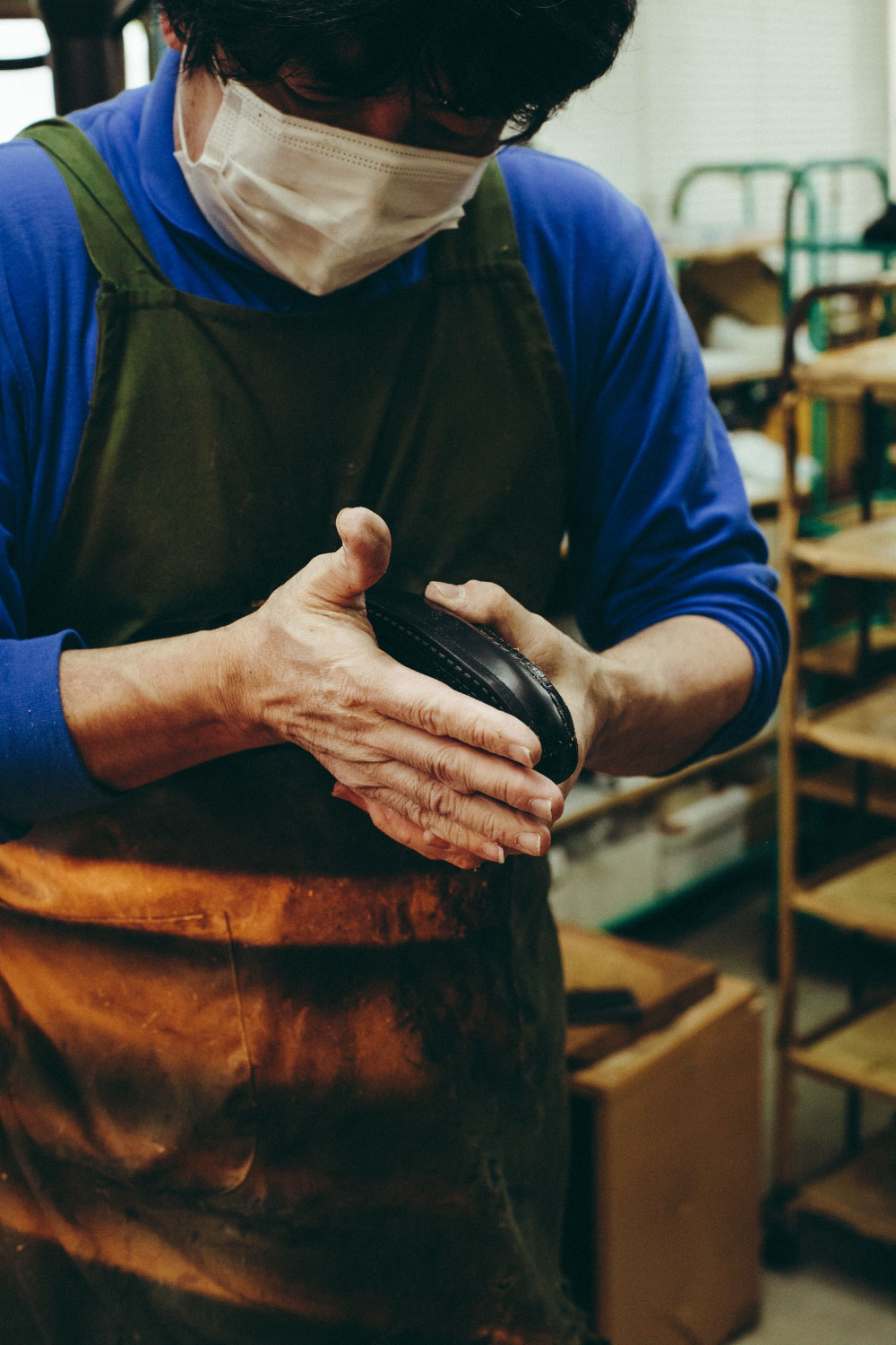 3Eという幅広設計ながら、それを感じさせない程よくシャープにデザインされたシルエットが、トウラスターと呼ばれる機械や手作業を駆使して、木型に丁寧に沿わせることで成形されていきます。