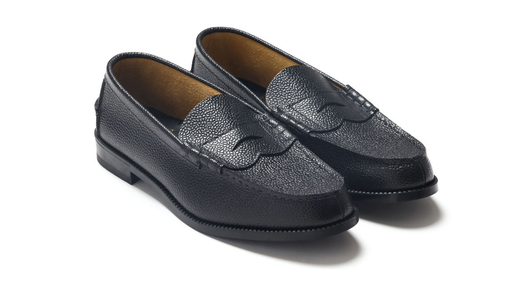 生産現場を紹介した”KP17"は、ブランド誕生時から続くコインローファー。よりソフトな足当たりのアッパーや内部構造にリフレッシュを果たしました。ブラックやダークブラウンに加えて、タフな印象を醸す型押レザーのバリエーションもラインナップ。カジュアルなスタイリングにも対応する汎用性を備えた1足は、ケンフォードショップで販売中です。
