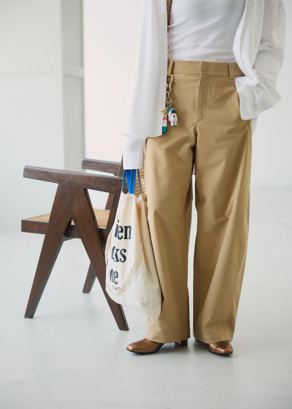 スタイリング全体に言えることですが、私は特に洋服(とくにボトムス)とシューズの色のつながりを意識しています。今回の4つのスタイリングに限らず、日々のコーディネートでも常に心がけているポイントです。