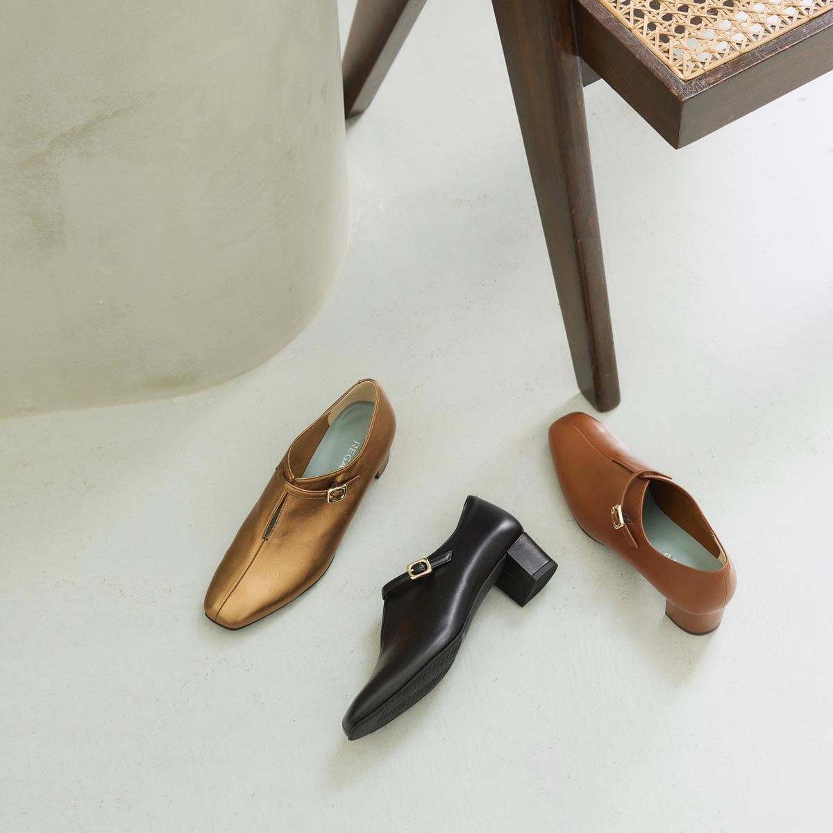 スクエアのつま先がスタイリッシュなシューティ。華奢なストラップが女性らしさを引き立てます。クッション性の良いインソールが軽やかな一歩を叶えます。