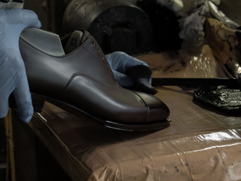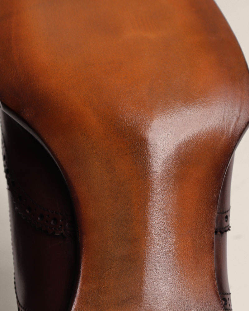 丁寧に積み上げられたヒール、そしてマンチェスターのために調色されたソールステインを何度も塗り重ねることで 、深みとアンティーク感のある表情が現れる。