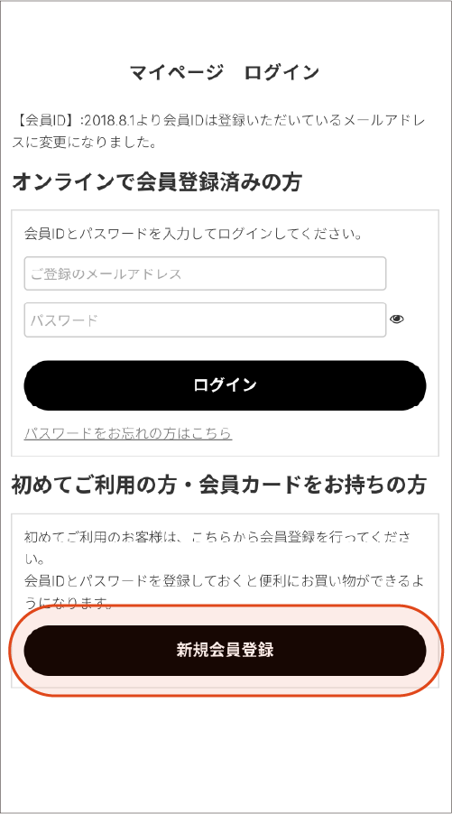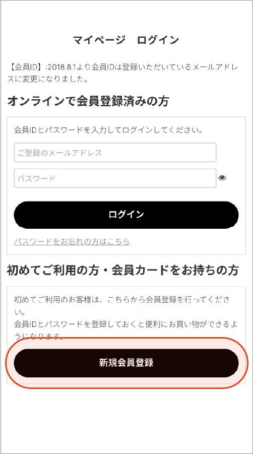 2ID(メールアドレス)とパスワードを入力しログインをタップ
