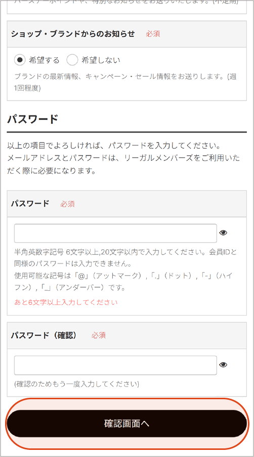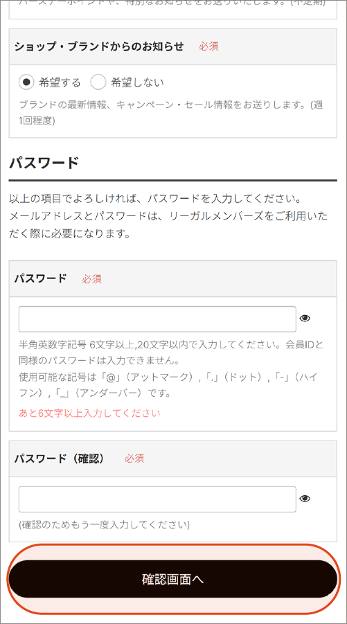 6氏名などのお客様の情報を入力して確認画面へをタップ