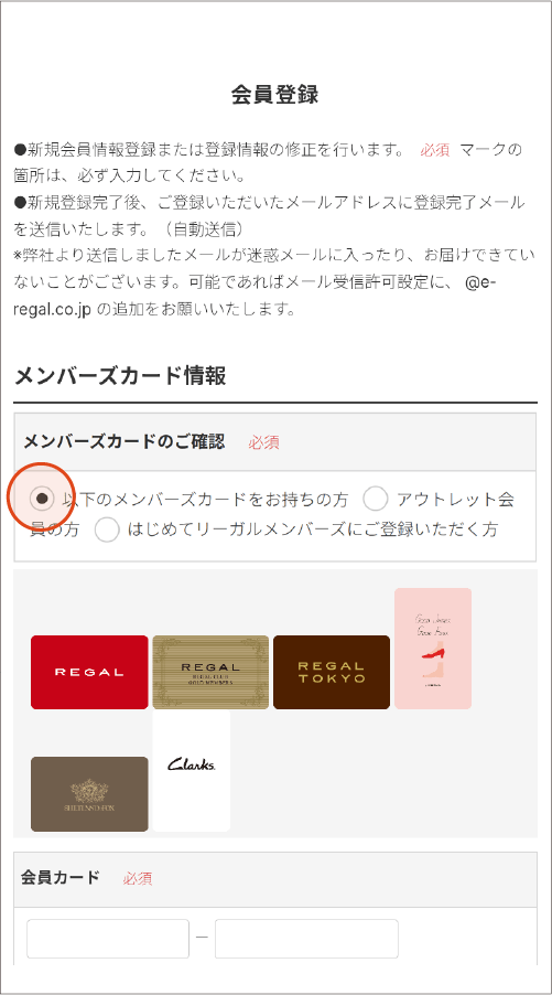 5以下のメンバーズカードをお持ちの方にチェックを入れる