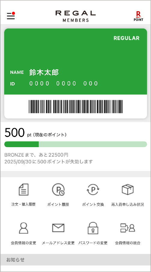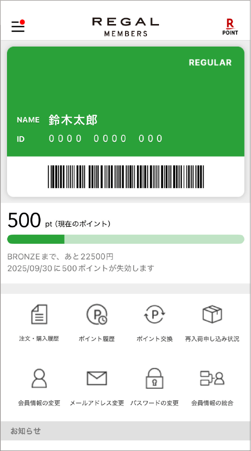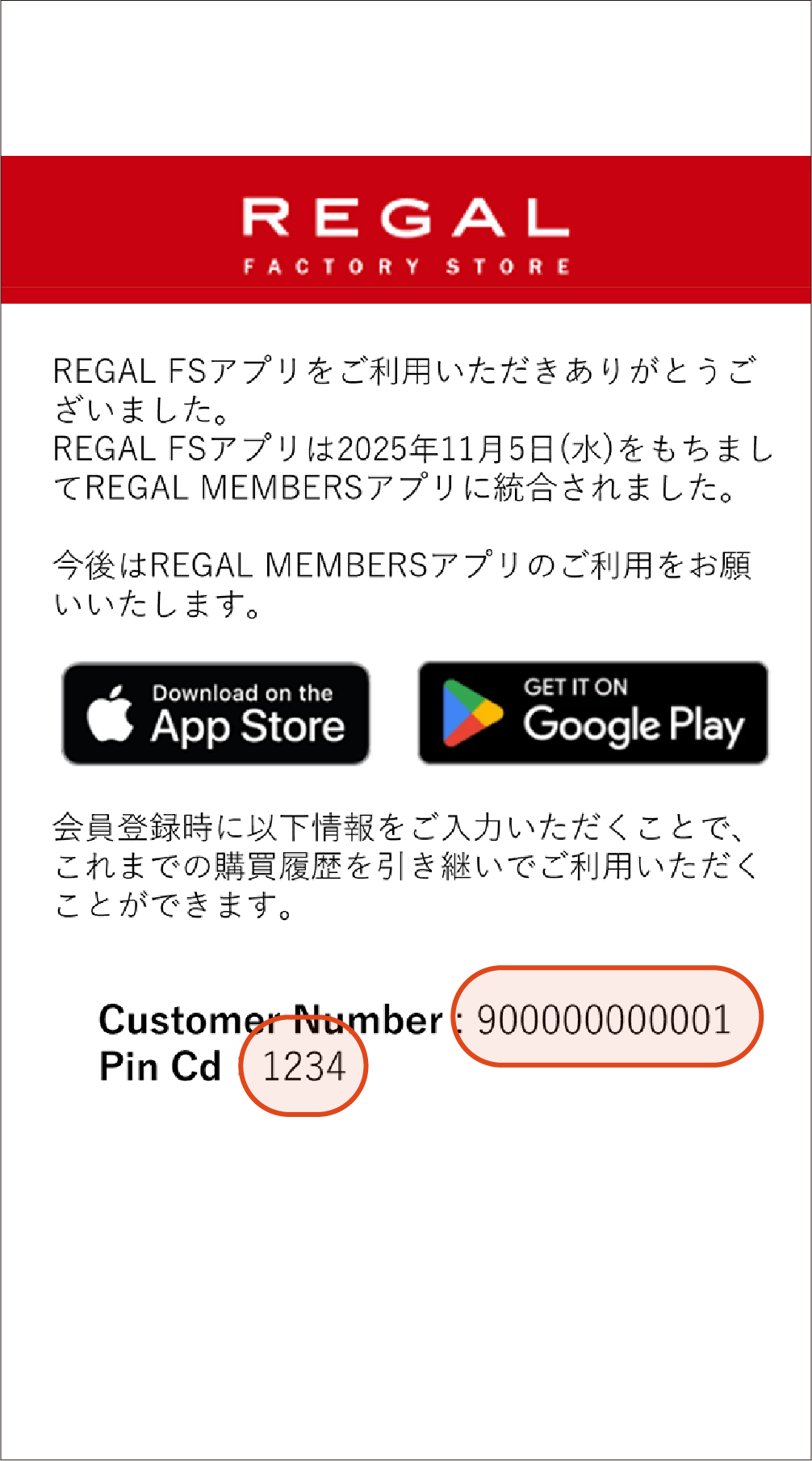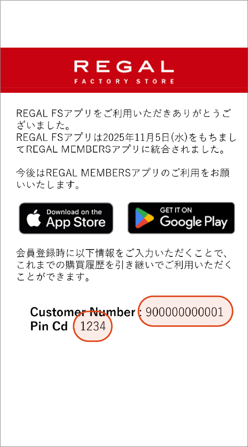 「REGAL MEMBERS」と「REGAL FACTORY STORE MEMBERS(アウトレット)」が一つに統合。