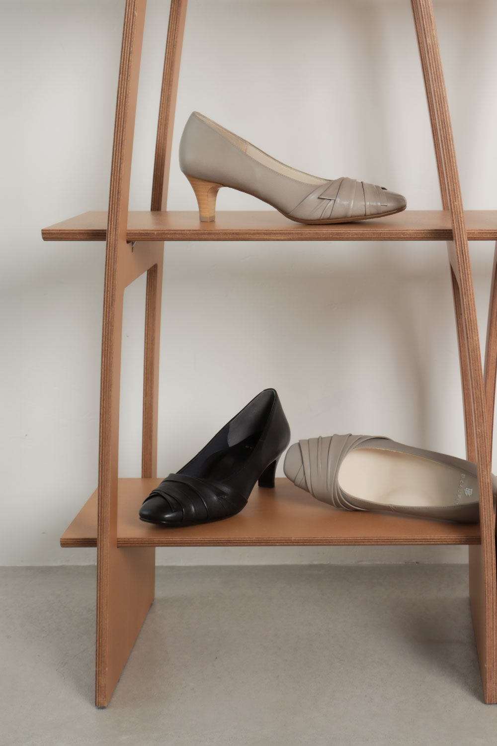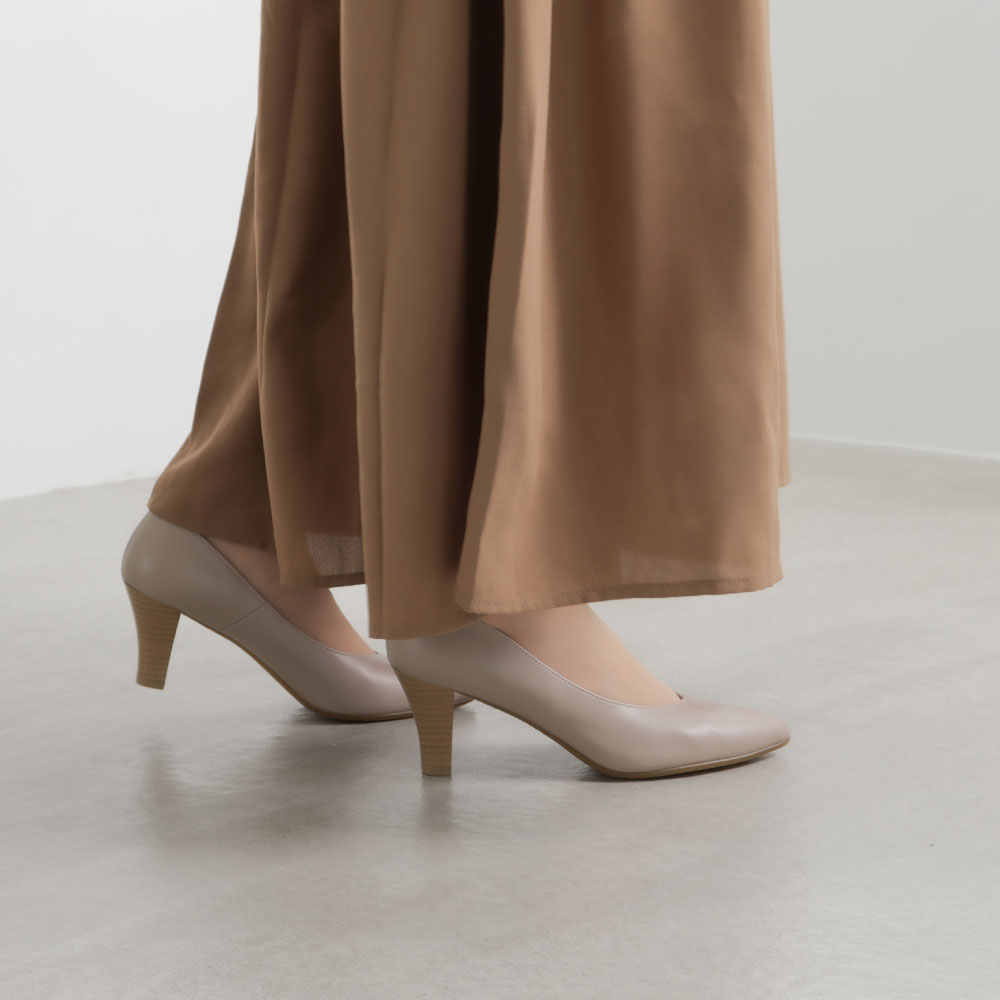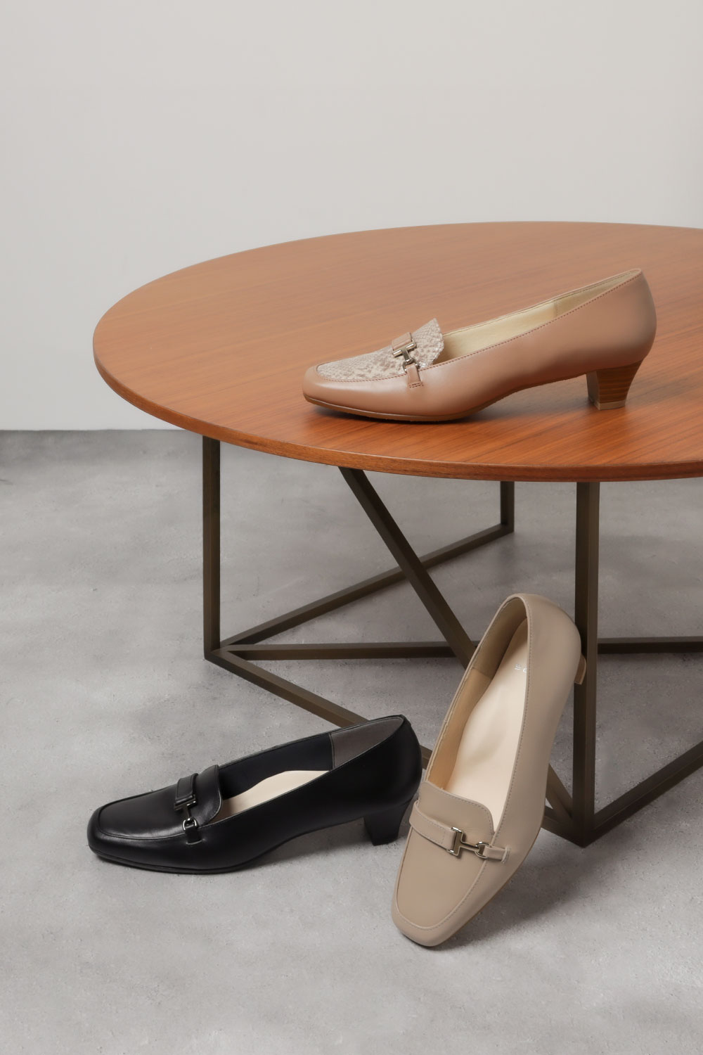 甲の部分が浅いデザインであったり、足幅に合わせて大きめのサイズを選んでしまう..など、パンプスのかかとが脱げてしまう理由は様々。足の甲を覆うモカタイプのパンプスなら甲がしっかりとホールドされて安定感が増します。