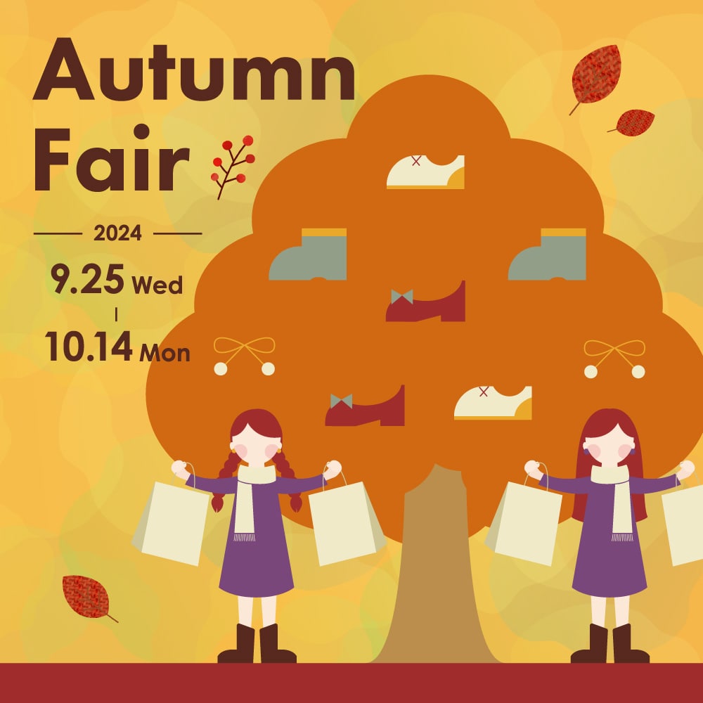 いつもcamelotをご愛顧いただきまして、ありがとうございます。9月25日(水)~10月14日(月)まで、「オータムフェア」を開催します。期間中、お店では素敵な秋物商品をご用意しております。お買い物が楽しくなるような演出の店内で、皆さまのご来店をお待ちしております。