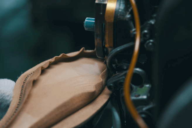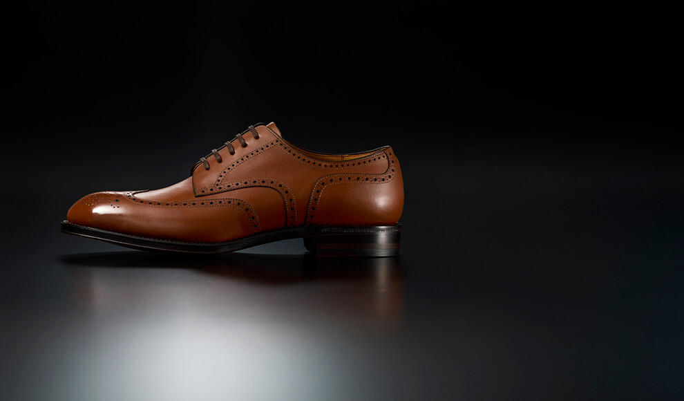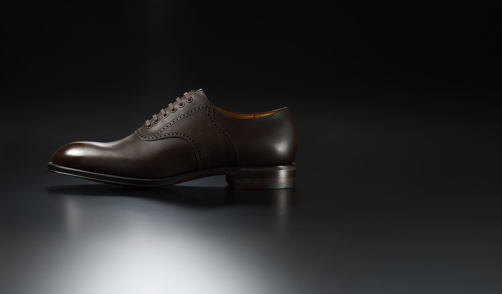 熟練の技は、ステッチワークで垣間見ることができます。正確に、そして細かく打ち込まれたステッチは、職人の積み上げられた技術と想いそのものです。それはイミテーションステッチ(飾りステッチ)にも、反映されています。革の重なる部分でも極力薄く、しかも均一な縫い際を実現。すっきりシャープな靴のプロポーションがより美しく見えるのは、そんな職人の技術が随所に活かされているからなのです。