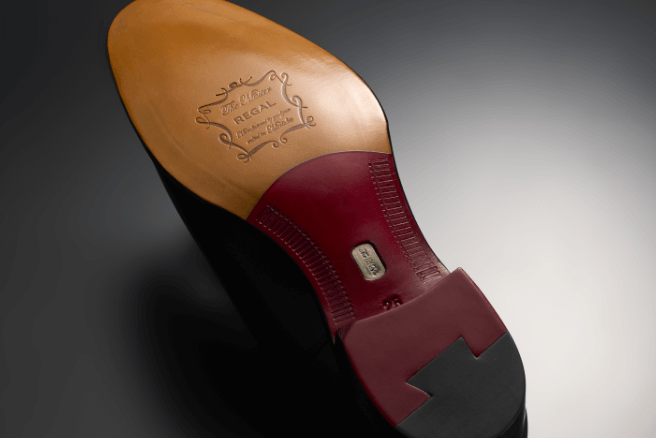 踏まずとヒール部分に、アイコニックな赤の塗料が塗られているのもThe MASTER REGALならでは。綺麗に赤色が入るように、手作業でソールを削り、職人が一足一足塗っていく。仕上げに、The MASTER REGALの特別なロゴが刻印されます。