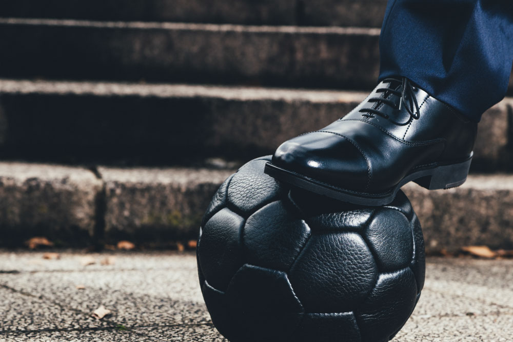 代表として、保護者との面談や地域連携の会議など、グラウンドの外にもONの場面を持つ村田さんがピックアップしたシューズは、王道のストレートチップ。ネイビーのセットアップスタイルに合わせることで、組織の代表としての信頼感を醸します。