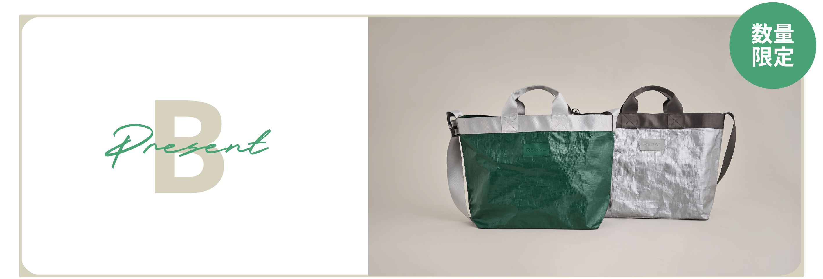 ※ REGAL ONLINE SHOP でのお買い上げは、オリジナルトートはお選びいただけません。「ポイント 2 倍」のプレゼントのみになります。