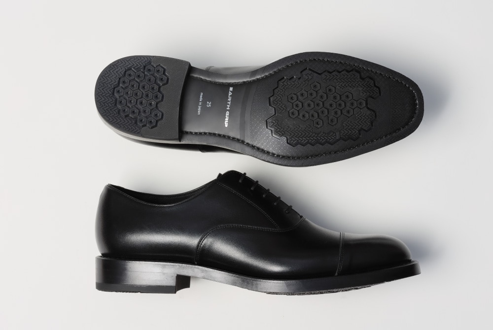 日進ゴム株式会社と共同開発したオリジナルソール“EARTH GRIP”を採用し、グッドイヤーウエルト式製法で仕立てたストレートチップ。履くほどに足に馴染む伝統的な製法に、さまざまな路面に対応するグリップ力が加わりました。機能性とクラフトマンシップが融合し、クラス感のあるルックスと実用性の高さを両立する一足となりました。