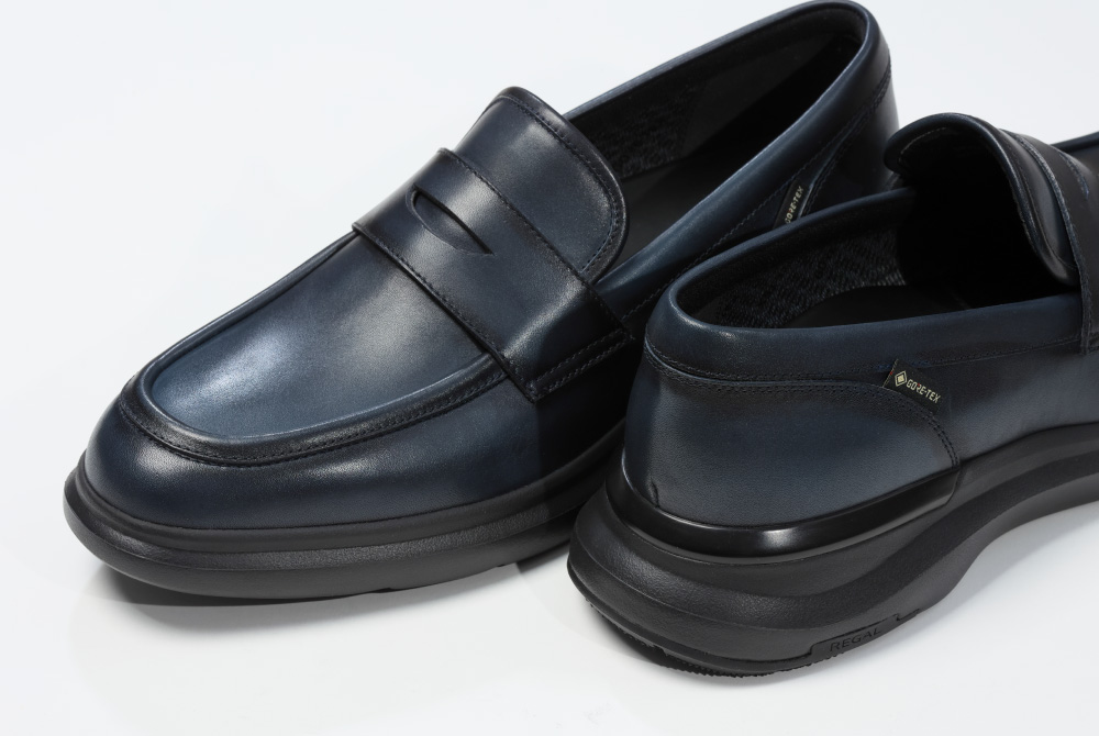 オーセンティックなレザーシューズのデザインにスニーカーライクなボリュームソールをドッキングしたハイブリッドシューズ、”R-wing”シリーズにローファーとホールカットの2デザインが加わりました。カジュアルからセットアップなどのオフィススタイルまで、日常の幅広いシーンで活躍する汎用性の高いデザインに加え、ゴアテックス ファブリクス搭載で天候にも左右されないタフな一面も持ち合わせています。