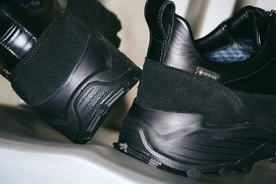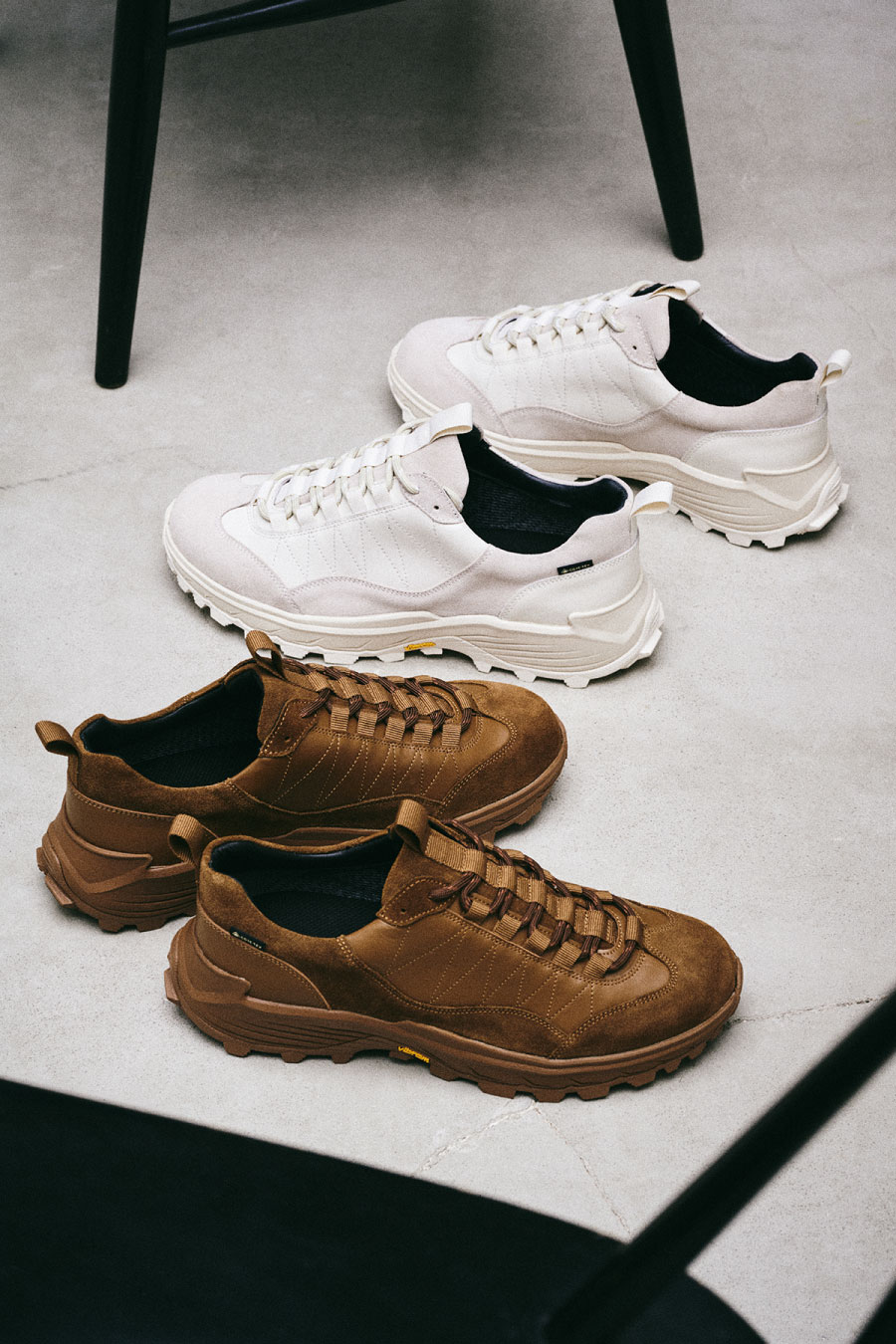 都会的でモダンな印象を与えるセンタージップタイプは、ストレスを感じさせない着脱のスムーズさが魅力。シューレースやサイドのステッチなど、スポーティな要素をあえて省くことで、洗練されたシンプルさを追求しました。ミニマルなルックスの中に、GORE-TEX®ファブリクスとVibramソールの機能を搭載。街に溶け込むデザインと、フィールドで頼れる機能性を両立した一足です。