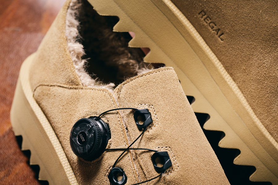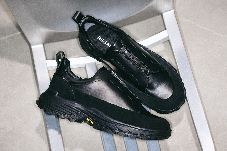 90年代に展開していたREGAL SPORTSに着想を得て、現代のテクノロジーを搭載し再構築したスニーカー。アッパーにはGORE-TEX® ファブリクスを、ソールにはグリップ力に優れたVibramソールを採用しました。足元の不安を解消することで、1日の過ごし方はもっと自由になります。