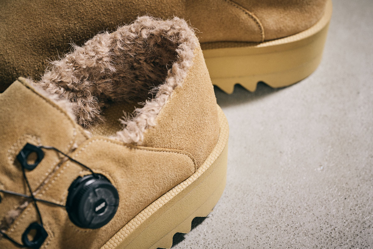 暖かなボアを備えたスリップオンとミュールは、ダイヤルを回して好みのフィット感に調節できるクロージャーシステムを搭載。ソールには軽量性、クッション性を兼ね備えたVibram NEWFLEXを採用し、デザイン性と快適性を一足の中に盛り込みました。