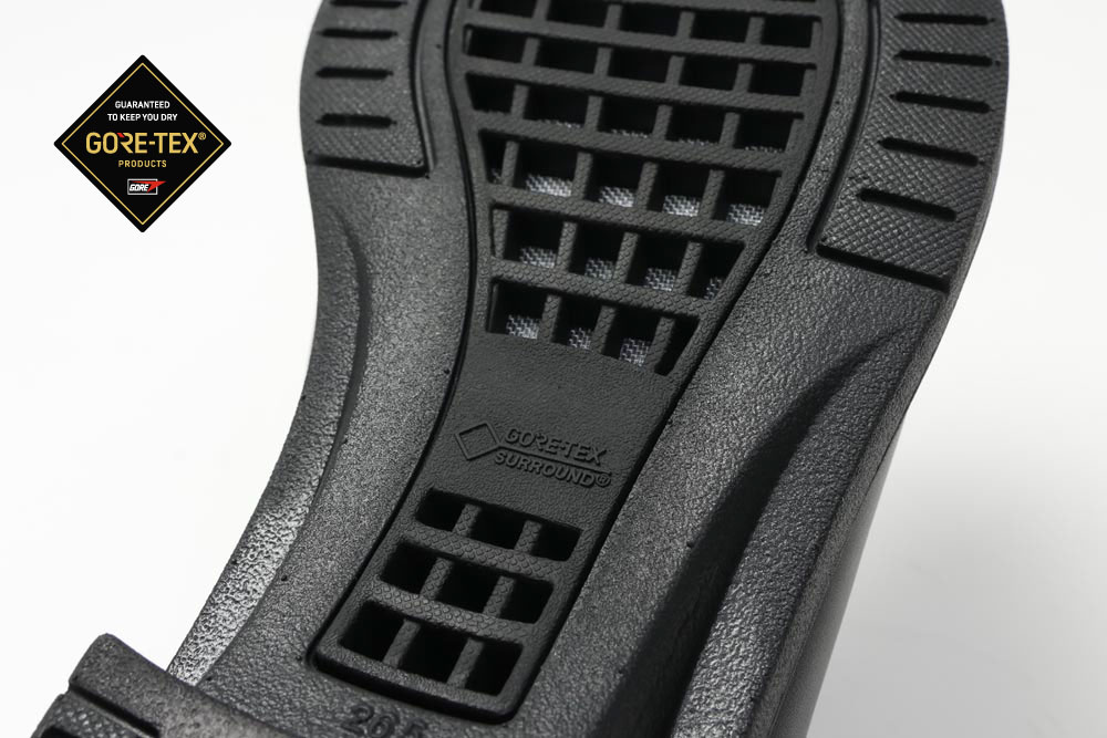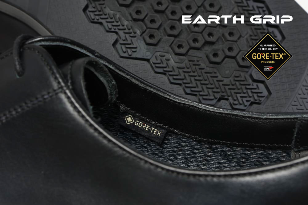 安全靴業界でも高い実績を誇る日進ゴム株式会社との共同開発で生まれた「アースグリップ」ソールは様々な路面状況に対応。濡れた路面や積雪の路面でも、軽快に自信を持って歩くことができます。GORE-TEX®ファブリクスによる防水性も備わったことでドレスシューズでの行動範囲が格段に広がります。