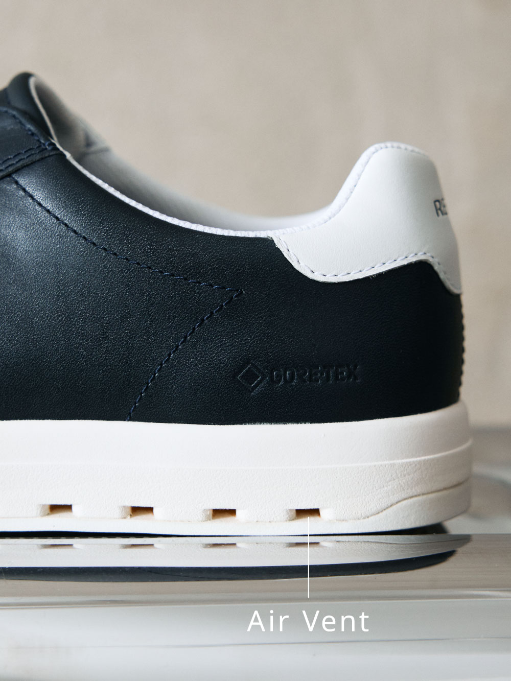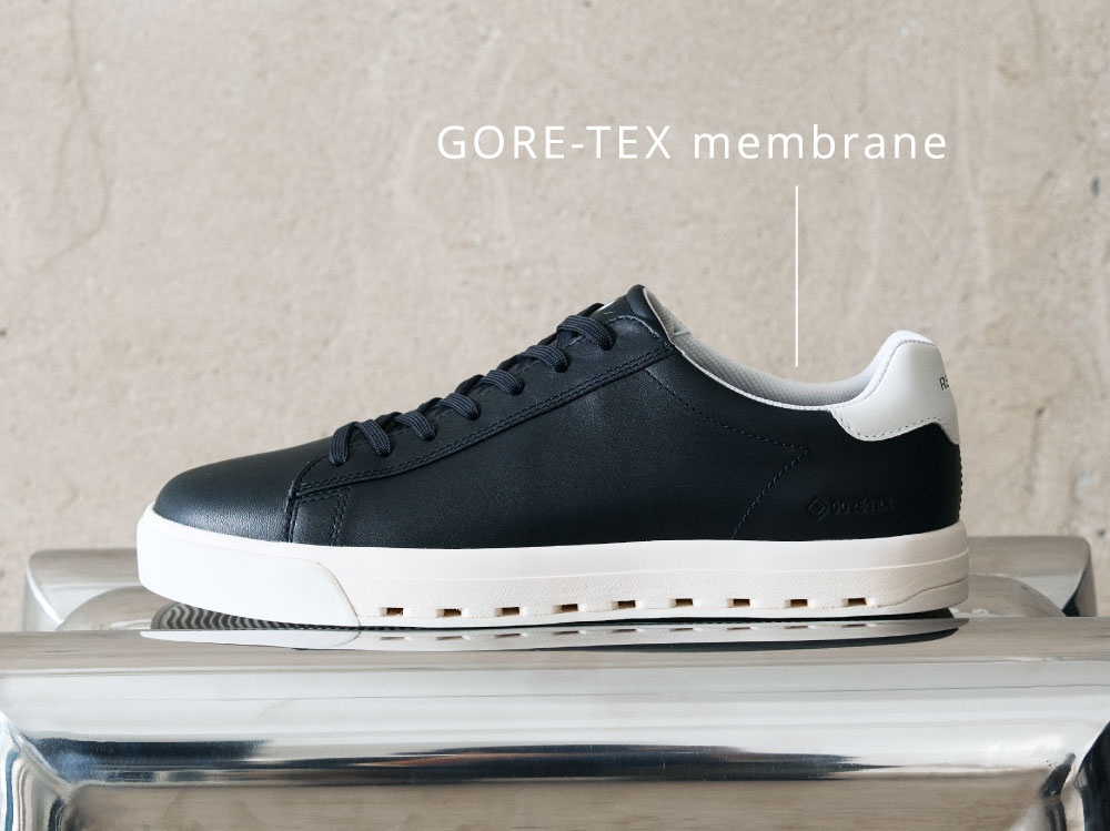 スニーカーでありながら、どこか品を感じさせる佇まい。カジュアルなビジネススタイルにも自然と馴染むバランスを保ちます。ゴアテックス サラウンド®プロダクトテクノロジーを採用することで、防水性と透湿性を両立。雨の日も汗ばむ季節も、シューズ内をドライな状態に保ちます。さらにソール内部に通気口を設けることで空気の流れを促し、蒸れを軽減。天候やコンディションを気にせず、安心して履ける一足に仕上げました。