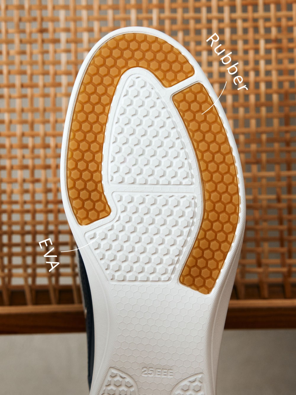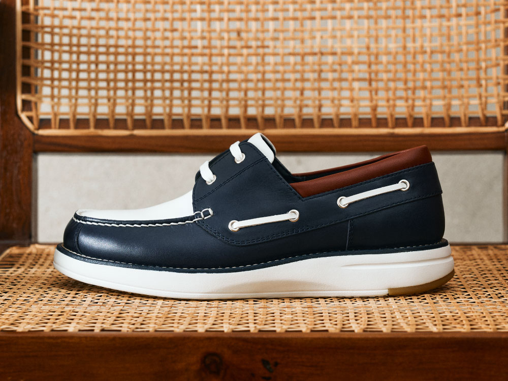 ハンドステッチモカで縁取られたトウと、2アイレットのモダンなバランス。エフォートレスなフォルムに、さりげなくひねりを効かせました。ウォーキングシューズの思想を受け継ぎ、幅はゆったりと設計。柔らかな革が足を包み込み、履き口のナイロンジャージ素材がさらに優しい足あたりに。クッション性と耐久性、そして滑りにくさを兼ね備えたEVAとラバーのコンビネーションソールを採用し、日常使いにも安心感を。デザインと快適性が穏やかに共存する一足です。