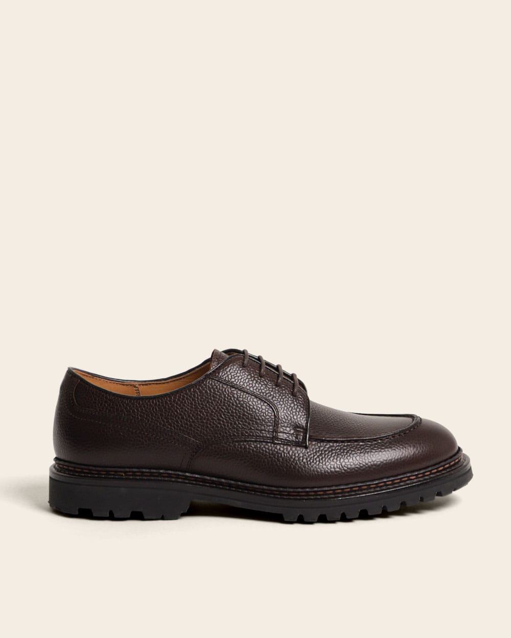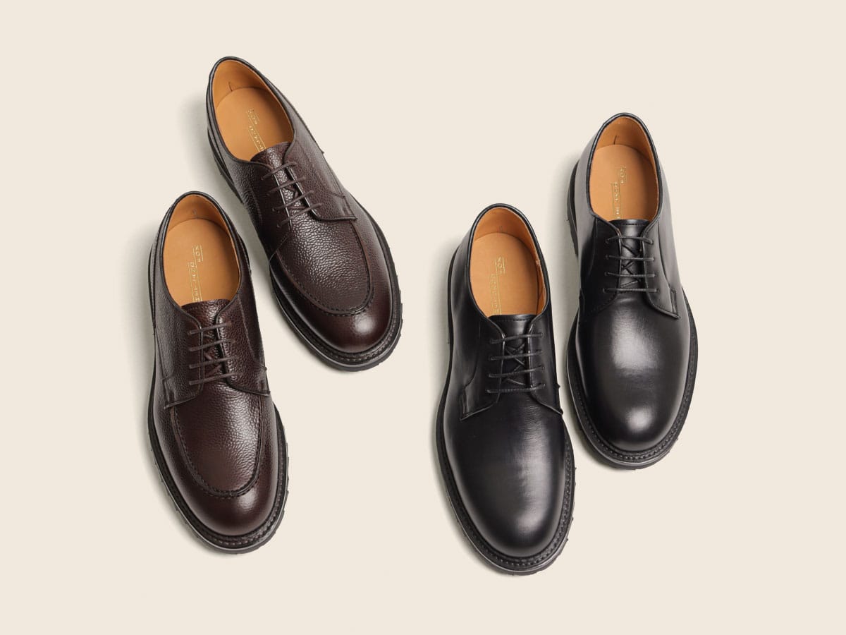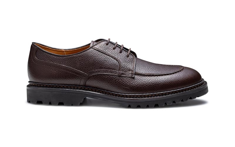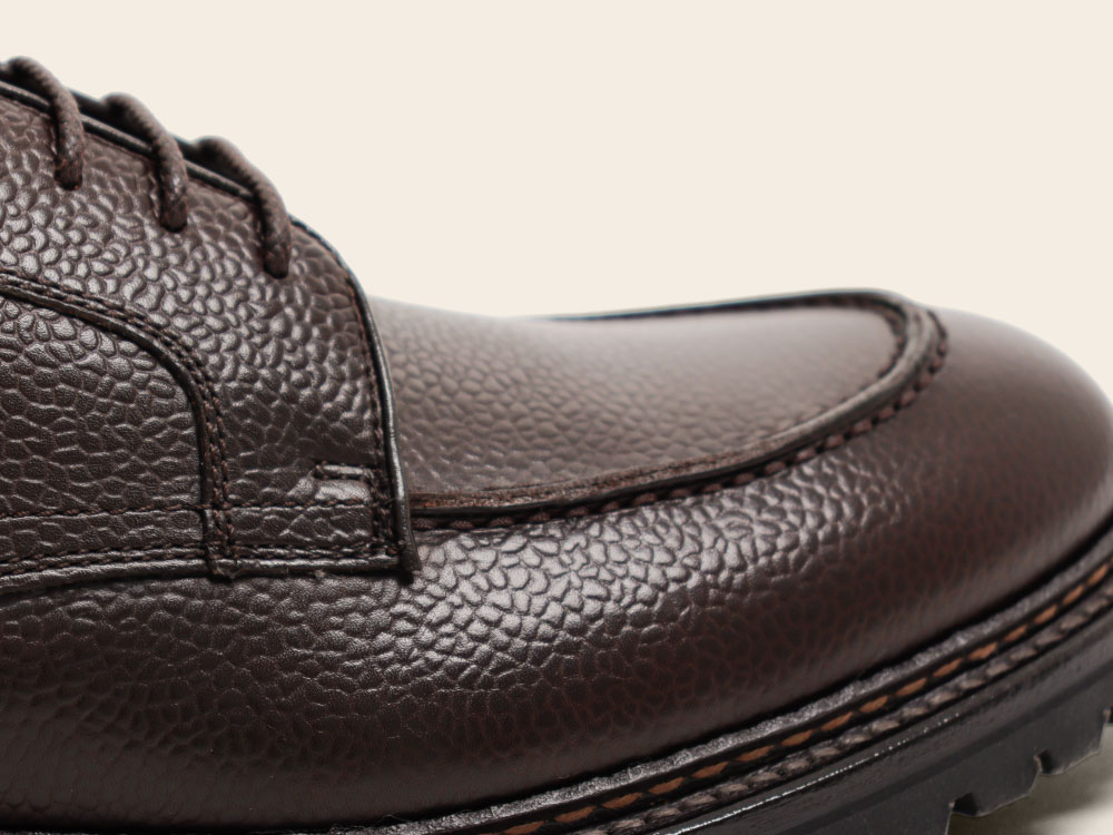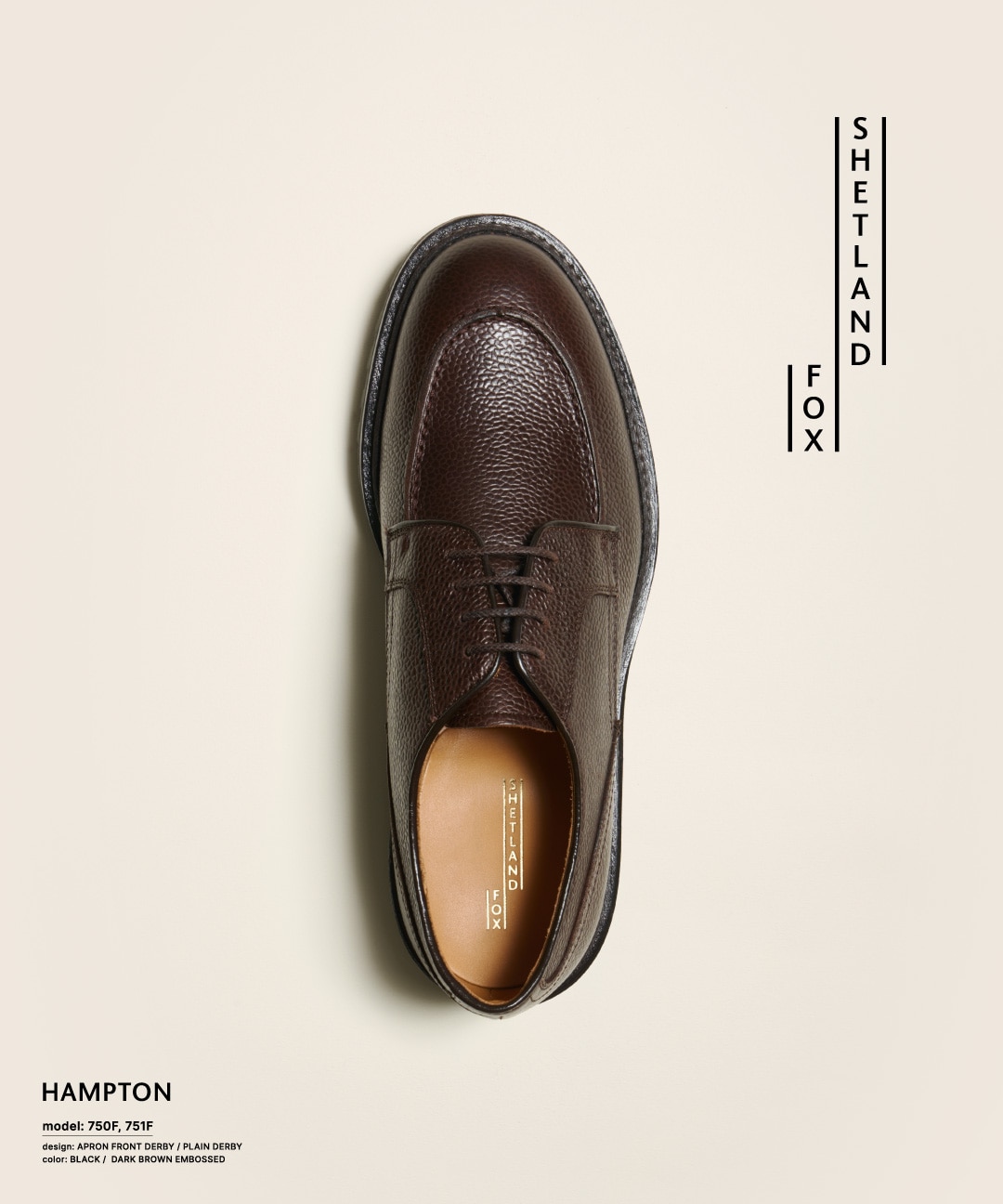 無骨な表情の革を採用する一方で、ステッチラインはドレスシューズのように繊細だ。その緻密なピッチが、SHETLANDFOXらしい確かな上質さを体現している。