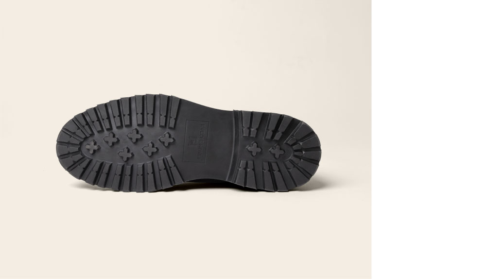 アウトソールに採用したのは、仏・LACTAE HEVEA社(ラクタエ・ヘベア)の、パラゴムノキから採取される純度100%の天然樹液(ヘベアミルク)で作られるラテックスソール。その独特な反発力は、長時間の歩行でも疲れにくく、柔らかな履き心地を実現した。