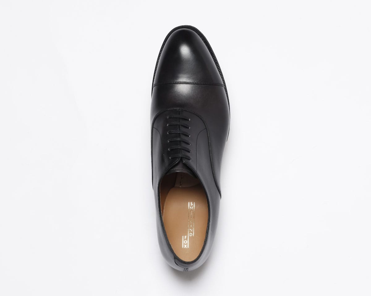 つま先と、甲から羽根周りの中心線を4~8mm内側にずらし、人の骨格や肉付きに忠実に木型を設計。足の甲骨の一番高くなっている部分は中心より内側にあるため、その位置と重なるように木型を削り、足に自然な形で寄り添うように作られている。靴の中で足が外に流れないようホールドされるよう計算し、足の動止に関わらずいかなる時も自然と吸い付くようなフィッティングを実現した。