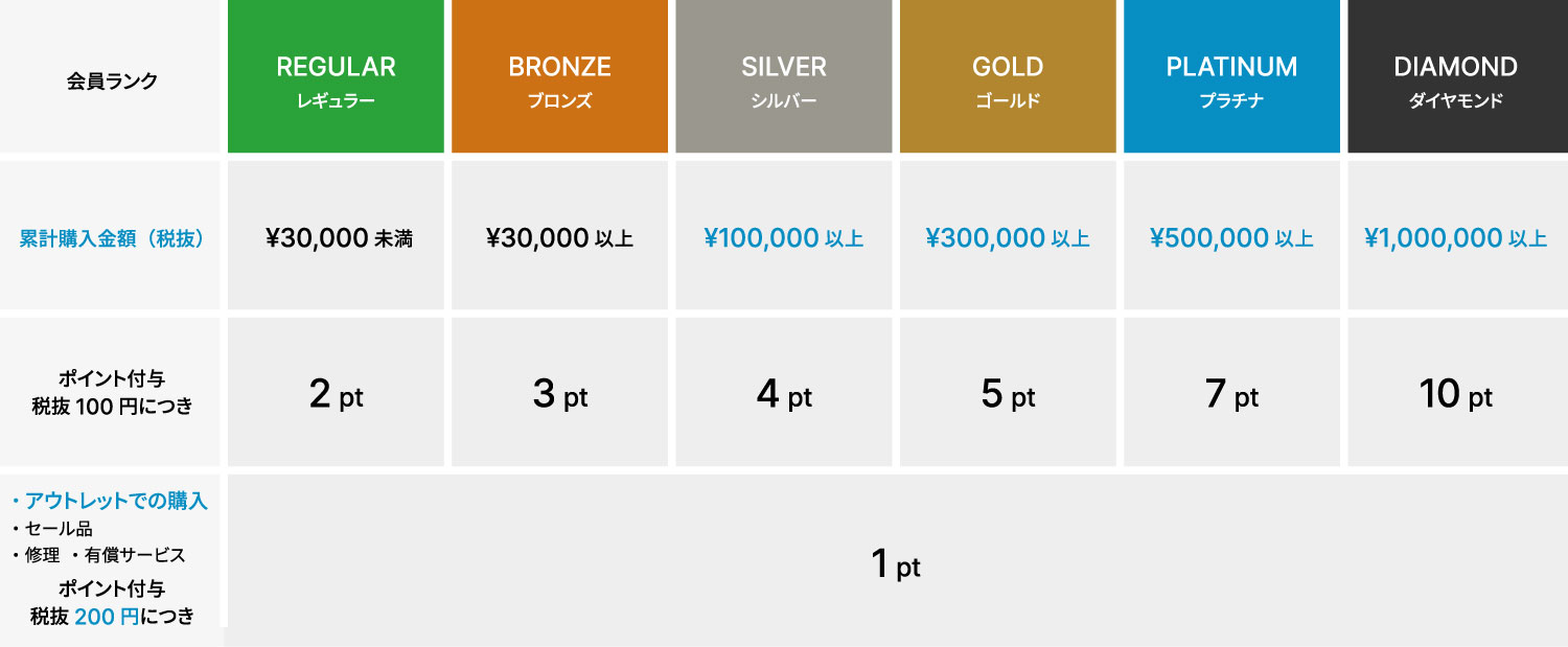 ・累計購入金額とは、「REGAL MEMBERS」および「REGAL FACTORY MEMBERS(アウトレット)」における、 ご入会後の購入金額を通算したものです。