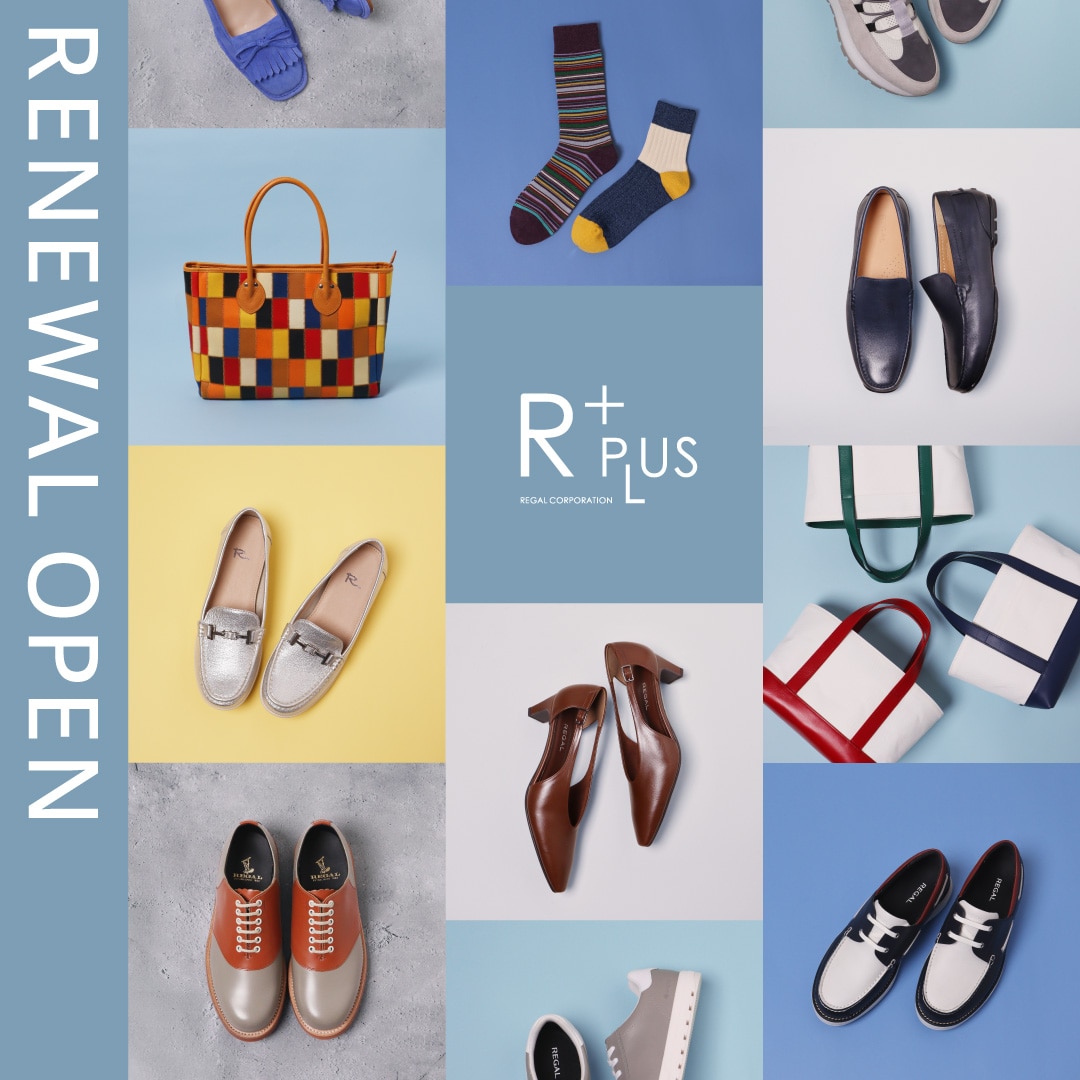 「R+ PLUS REGAL CORPORATION(アールプラス リーガルコーポレーション)」では、紳士靴、婦人靴に加え、シューケア用品やバッグ、小物(財布・靴下など)まで幅広く取り扱っています。リーガルコーポレーションの基幹ブランドである REGAL やオリジナルブランドの KENFORD をはじめ、Dr.Martens、SKECHERS など、国内外の様々なブランドを豊富に取り揃えています。