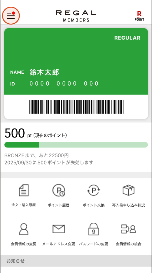 「REGAL MEMBERS」と「REGAL FACTORY STORE MEMBERS(アウトレット)」が一つに統合。