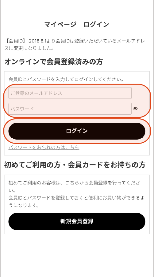 2ID(メールアドレス)とパスワードを入力しログインをタップ