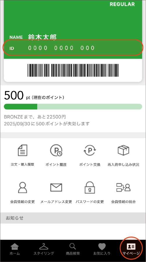 16マイページを開き、0〜3から始まるID(会員番号)を控えてください