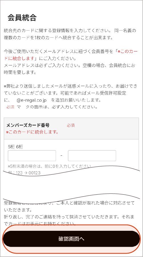 17こちらから「会員統合」のフォームを開き、記入欄を入力し、確認をタップ※メールアドレスは必須です