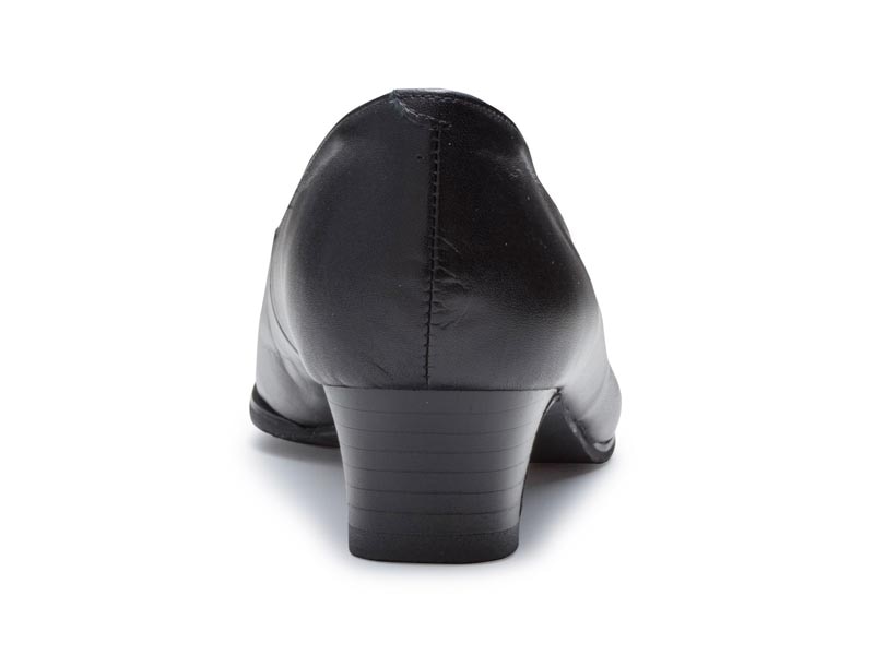ヒールの形状は横に太く、真横から見るとすっきり。ぐらぐらせずしっかりと安定するデザイン。