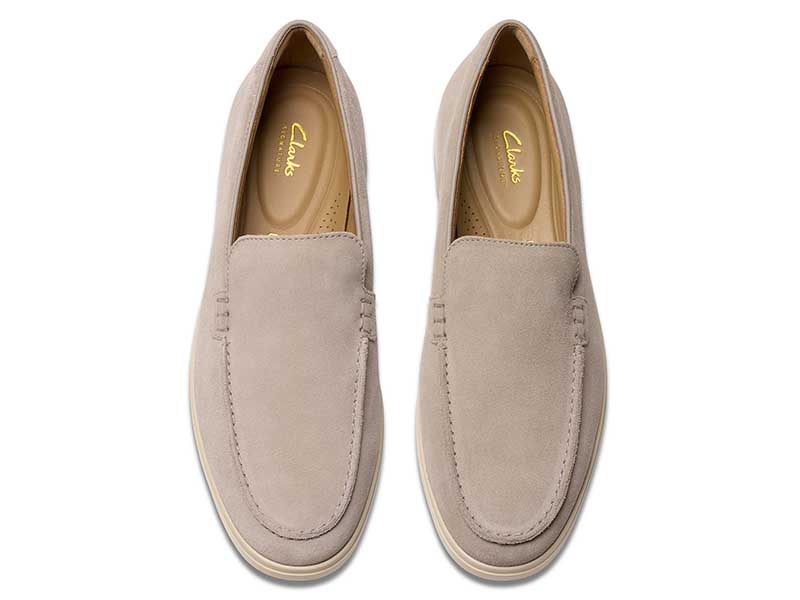 やわらかいスエードのアッパーとクッション性の高いフットベッドが快適な履き心地