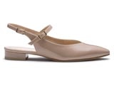 履き口のVカットが甲をすっきり見せ、ポインテッドスクエアが上品な印象に。