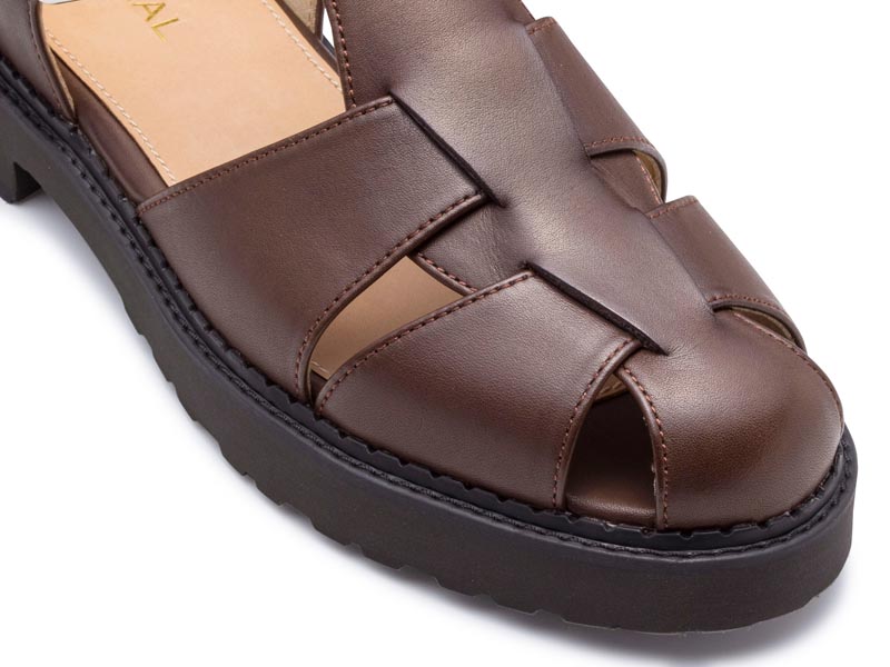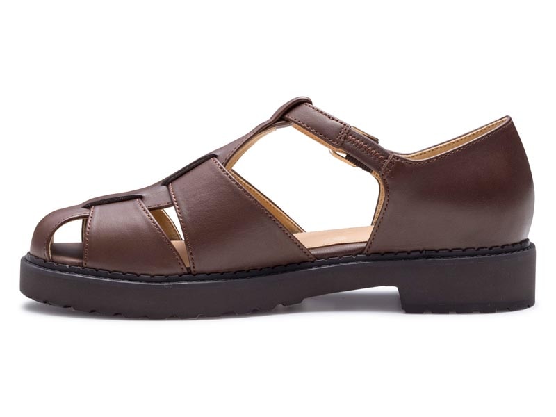 クッションをプラスし、軽くてやわらかなラギットソールサンダル。ベルト下のゴムにより着脱が容易。