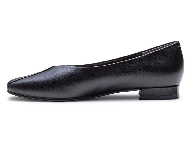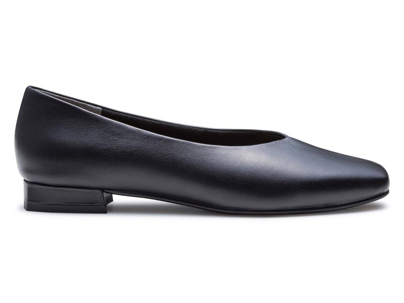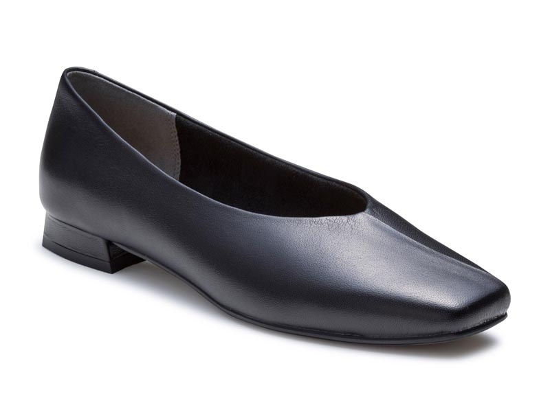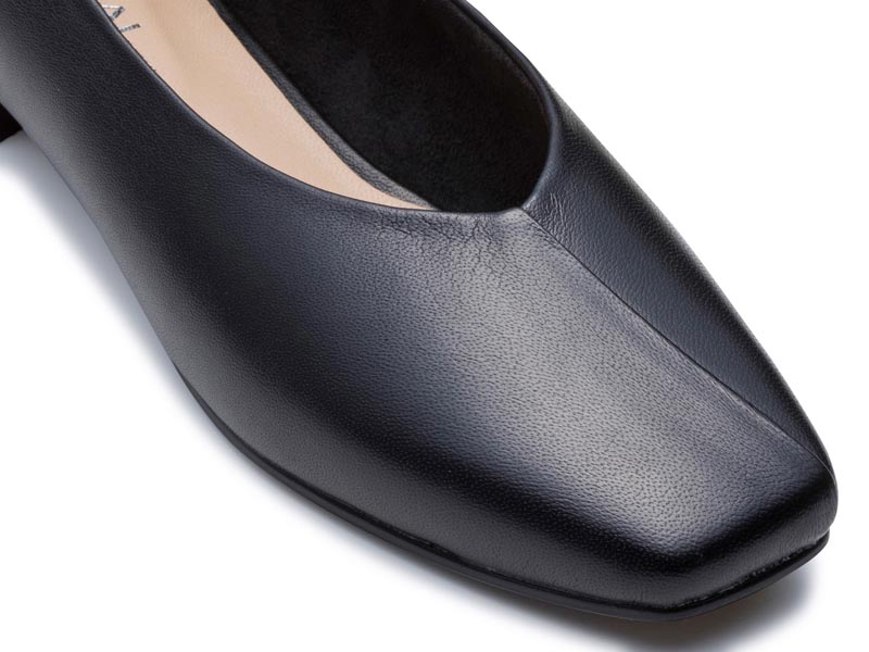 ソフトなスクエアトウに切り替えデザインを加え、履き口をやわらかなVラインにすることですっきりとした印象。