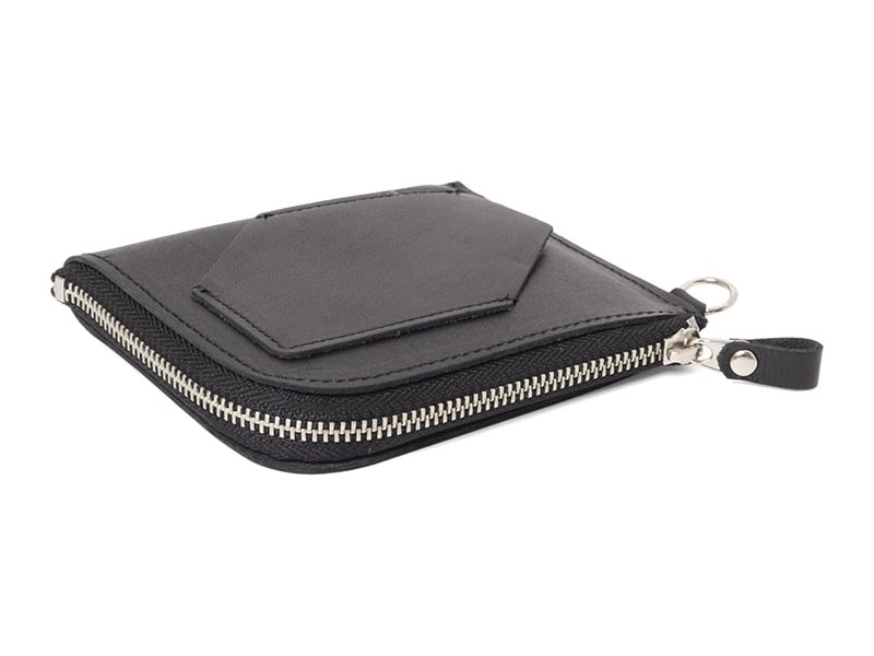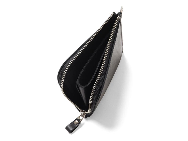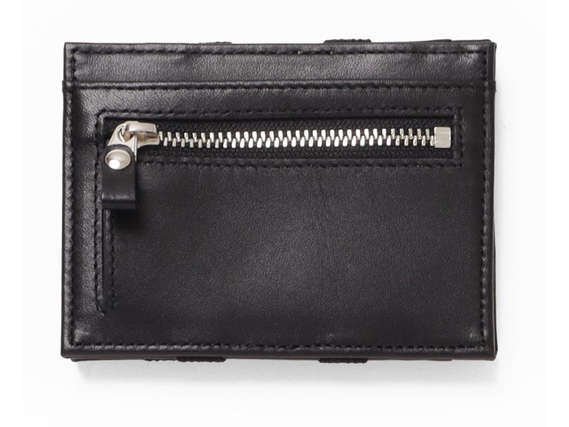 中には2つの仕切りスペースと小銭収納スペースがあります。裏側にはカードの収納が可能。