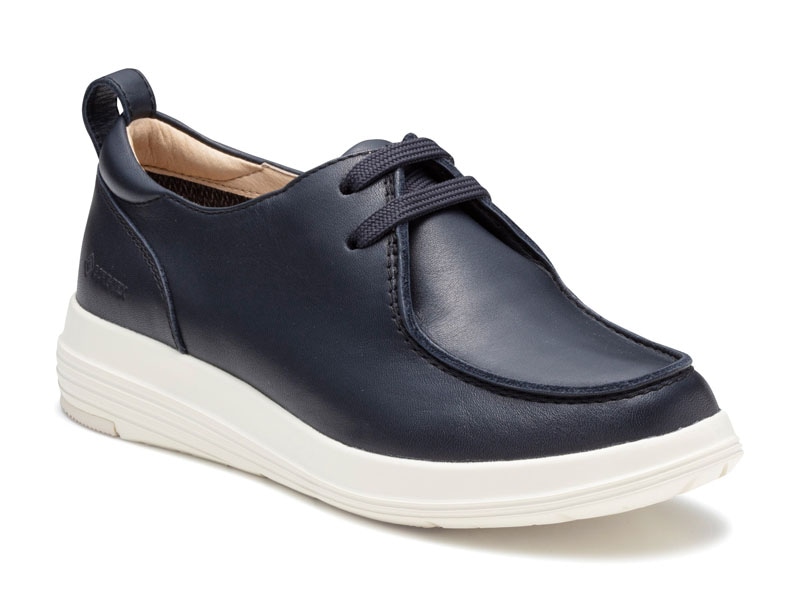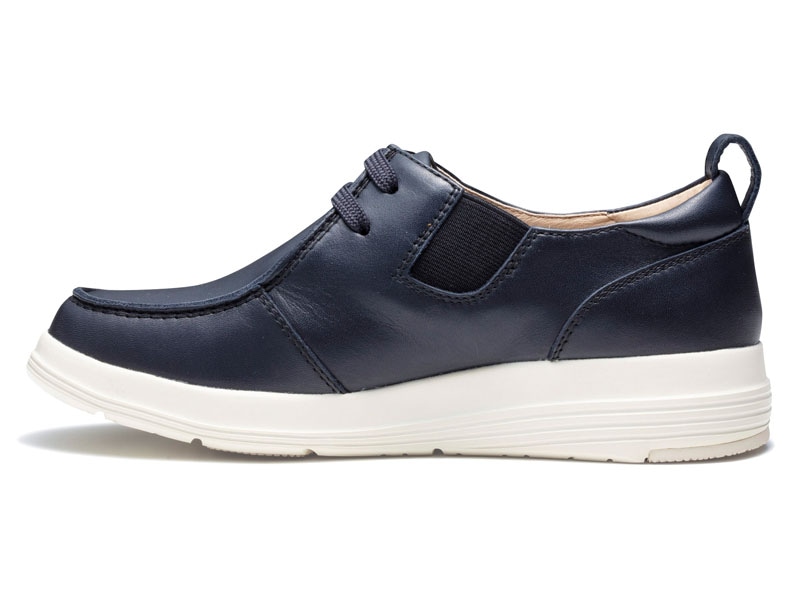 レースアップで足をしっかりサポートしつつ、内側ゴムと踵ループで脱ぎ履きをしやすくしています。