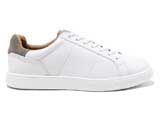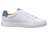 シンプルなホワイトベースながらも、ベロア素材の差し色が足元を引き立たせる一足です。