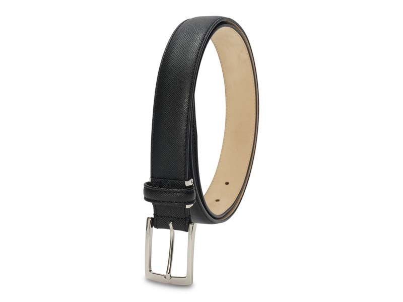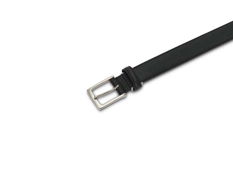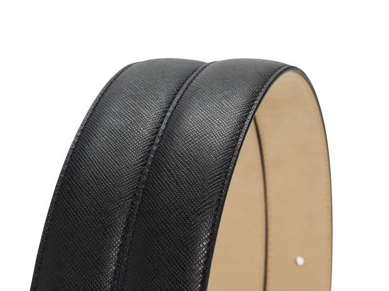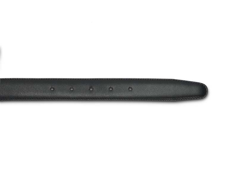 独特の細かい筋模様の型押しによりキズがつきにくいレザー。真鍮鋳物のバックルと組み合わせたシックなアイテム。