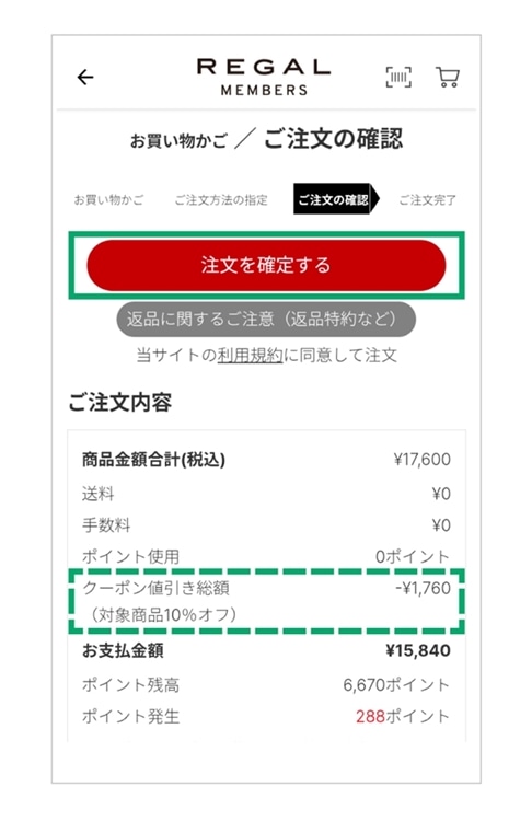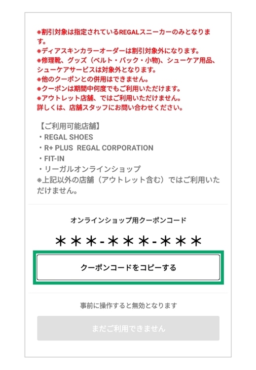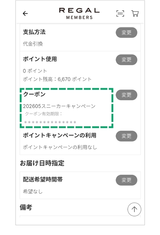 REGAL ONLINE SHOPでクーポンご利用時のお買い物方法