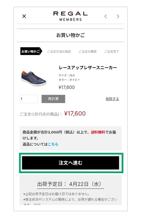 【1】カートから『ご注文手続きへ』進みます。